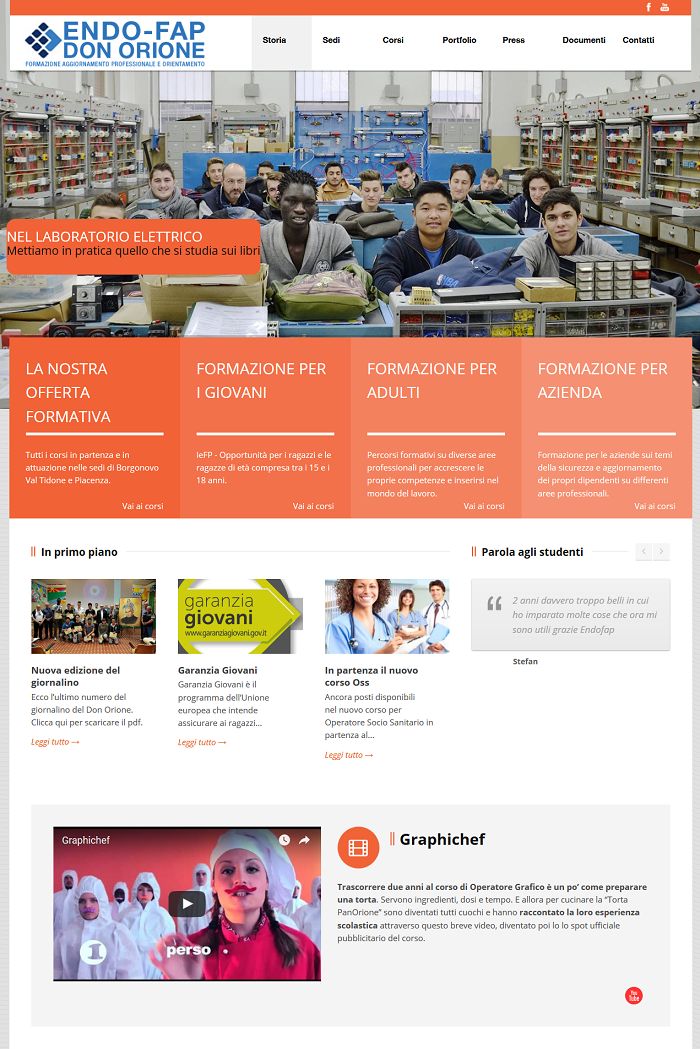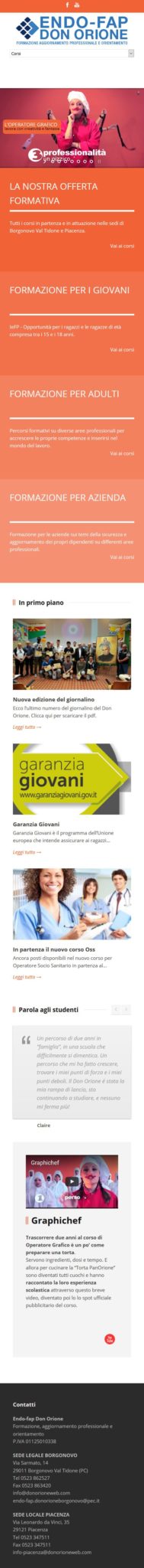 Endofap Don Orione ha rinnovato il suo sito con l’uso del CMS WordPress. In questo modo gestisce in completa autonomia e con grande semplicità l’aggiornamento delle informazioni sul sito e la pubblicizzazione dei corsi di formazione per aziende o singoli.